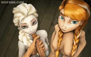 Gozando na cara da Elza e da Anna em GIF Hentai